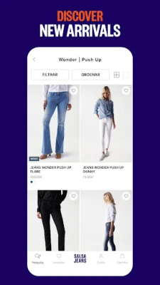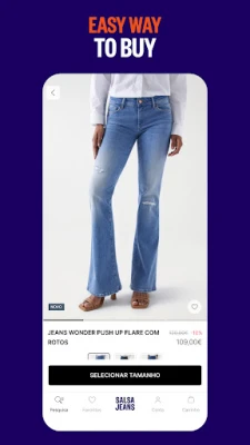 - Com a aplicação Salsa Jeans terás acesso a toda a coleção e poderás comprar roupa diretamente no teu telemóvel;