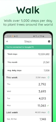 With Treekly, you earn trees by maintaining a daily walking habit of over 5000 steps. Take a positive step today for a healthier future on a happier planet.
