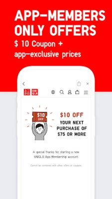 Download UNIQLO and unlock $10 off your first purchase of $75 or more—new customers only.